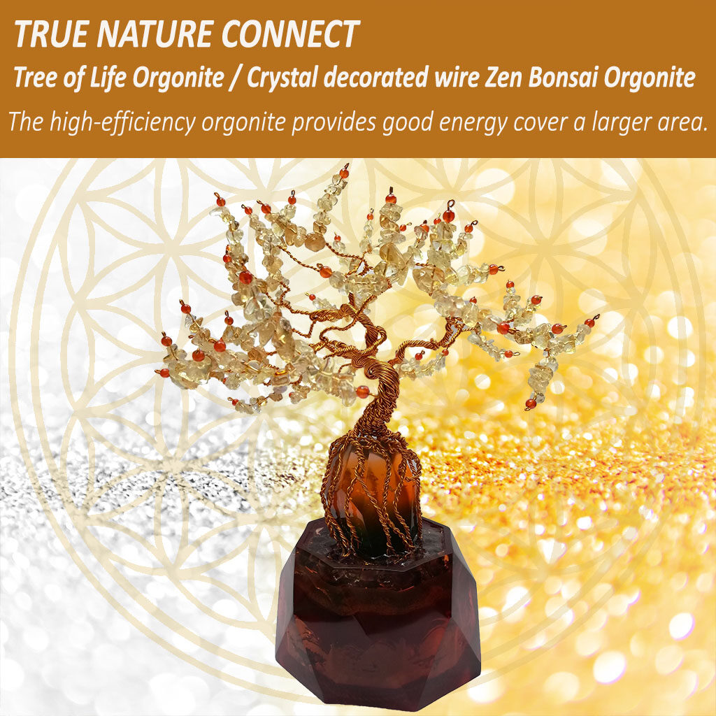 ต้นไม้แห่งชีวิตออร์โกไนท์นี้เป็นงานฝีมือที่ทำจากลวดอลูมิเนียมเคลือบสีหรือลวดทองแดง เป็นต้นไม้บอนไซประดับคริสตัลที่สวยงาม ถูกออกแบบให้ดูเหมือนต้นไม้แห่งพลังงานหรือบอนไซที่ตกแต่งด้วยหินคริสตัลหลากสี ตั้งอยู่บนกระถางซึ่งเป็นออร์โกไนต์ที่มีประสิทธิภาพสูงเพื่อให้พลังงานชีวิต ต้นไม้ลวดดัดนั้นทำหน้าที่เป็นเสาอากาศที่มีความยืดหยุ่นเพื่อเพิ่มการประสิทธิภาพในการรับส่งคลื่นพลังสั่นสะเทือนดียิ่งขึ้น สำหรับบางท่านซึ่งสามารถรับรู้พลังที่ละเอียดอ่อนได้อาจรู้สึกถึงพลังชีวิตซึ่งแตกต่างจากต้นไม้ตกแต่งทั่วไปอย่างสิ้นเชิง ต้นไม้ออร์โกไนท์นี้จะให้พลังงานพลังชีวิตแก่คุณ รวมถึงพลังทางเพศด้วย สถานที่และสภาพแวดล้อมของคุณจะบริสุทธิ์และสะอาด และได้รับการปกป้องจากพลังงานที่ไม่ดีอย่างมีประสิทธิภาพยิ่งขึ้น